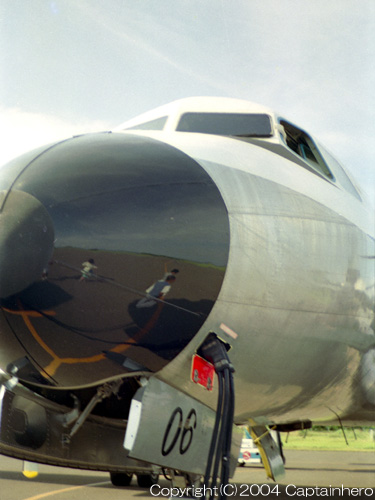 | 1990年初め頃に行った千歳空港で撮影したものです。ネガがフィルムケースにくっついたので、フィルムスキャンしたらそのしみが出てしまいました。このため、フォトショップで修正しましたが、しみがしみだけにかなりいまいちです。 |