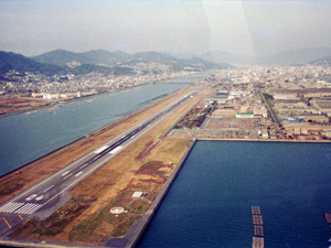 離着陸に必要な滑走路の長さは、厳密には、飛行機の重量・空港の高度(気圧)・風向・風力・フラップ使用の有無などの条件で異なります。高度の高い空港では空気が薄いので、海抜0メートルの空港よりも滑走距離が長くなります。 2人乗りのCessna150で最大重量1600lbs(約720kg)として離陸する場合、海抜0メートルで地上滑走が735フィート(224m)、滑走路端の高さ50フィート(15.3m)の障害物をクリヤーするには1385フィート(422m)の長さが必要です。また、同じ条件で着陸する場合、地上滑走が445フィート(136m)、滑走路端の高さ50フィート(15.3m)の障害物をクリヤーして着陸するには1075フィート(328m)の長さが必要です。 4人乗りのPiperになると、最大重量が2150lbs(約970kg)と重たくなりますので、離陸時の地上滑走が800フィート(244m)、着陸時の地上滑走が535フィート(163m)と長くなります。 滑走路の長さの話をすると、その昔、アメリカで夜間飛行の着陸をしようとしたときのことを必ず思い出します。よく滑走路がわからず、5900フィート(1800m)のマーセド空港の滑走路を全て使ってしまい、教官から笑われたんです。 写真は、滑走路1800mの広島西飛行場です。折りしもマーセド空港の滑走路と同じ長さです。 |