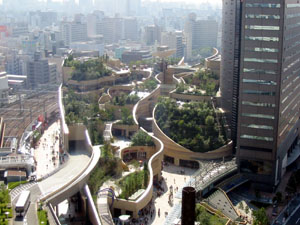 | 屋上庭園のアップその2 | 屋上庭園を下から (なんばシティとをつないでいる人工地盤から) |