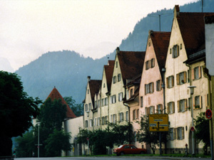 | ロマンティック街道の終点となるフュッセン。バイエルン・アルプスもふもと、森と湖にふちどられた静かで小さな街です。すぐ南にはオーストリア国境を越えてチロルの山々が連なっています。 近くには、ドイツで最も美しいといわれる2つの古城、ノイシュバンシュタイン城とホーエンシュバンガウ城が森に眠っています。 バイエルン王国の王としてルードヴィヒU世が多額の費用をかけて建てたノイシュバンシュタイン城(白鳥城)は、1869年から17年がかりで建てられました。ワーグナーの「ローエングリーン」「タンホイザー」に登場する騎士の城をイメージしてつくられ、その後ディズニーランドの「シンデレラ城」のモデルにもなりました。当時は王国の財政を悪化させたものの、今は多くの観光客が訪れており、その経済効果はかなりなもの。 ホーエンシュバンガウ城は、ノイシュバンシュタイン城のふもと、道をはさんだ反対側にあります。ルードヴィヒU世の父、マクシミリアンU世が1832年から荒廃した城を壊して、4年かけて居城を造らせたものです。ルードヴィヒU世が少年時代を過ごした城でもあります。 |